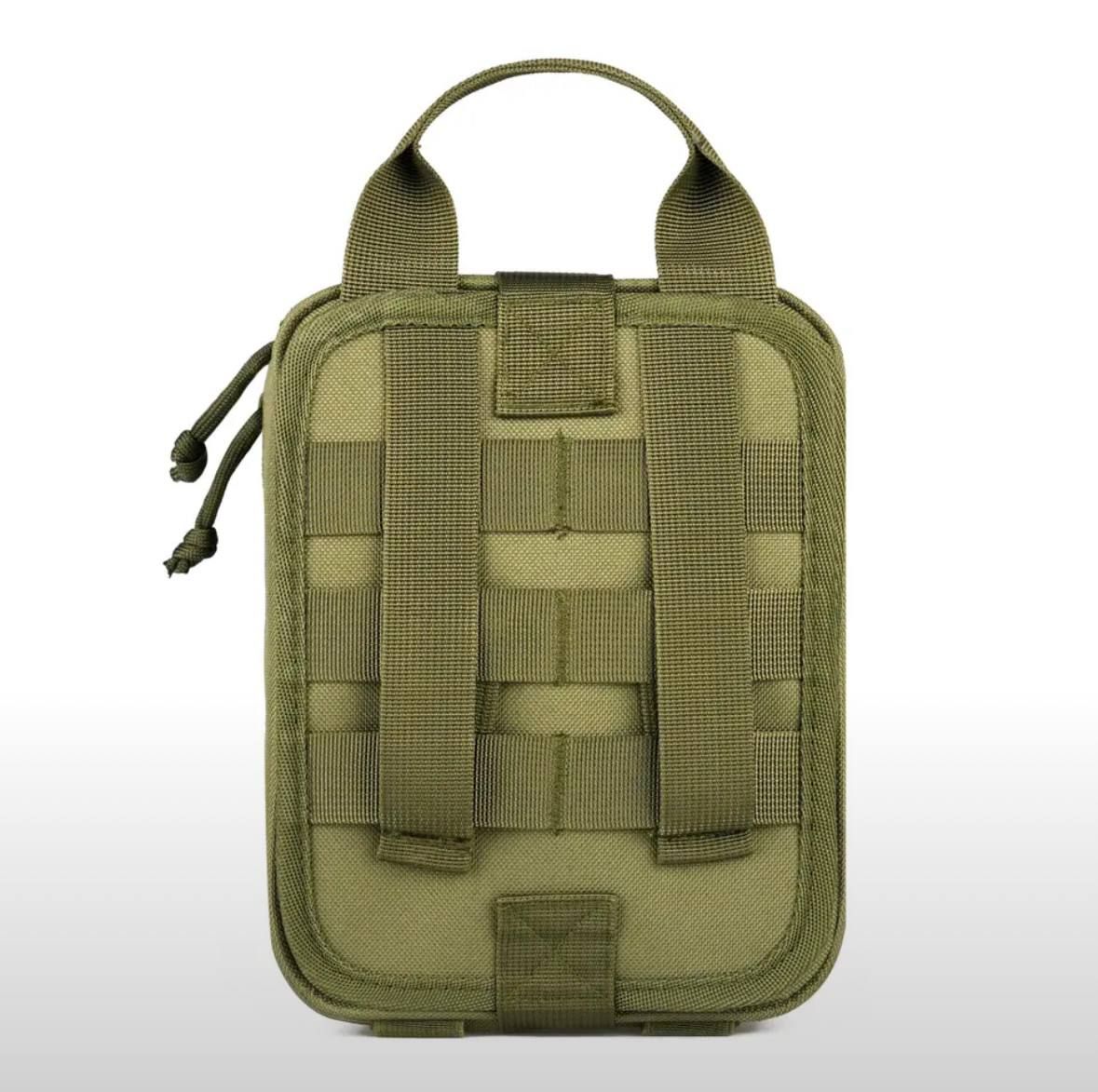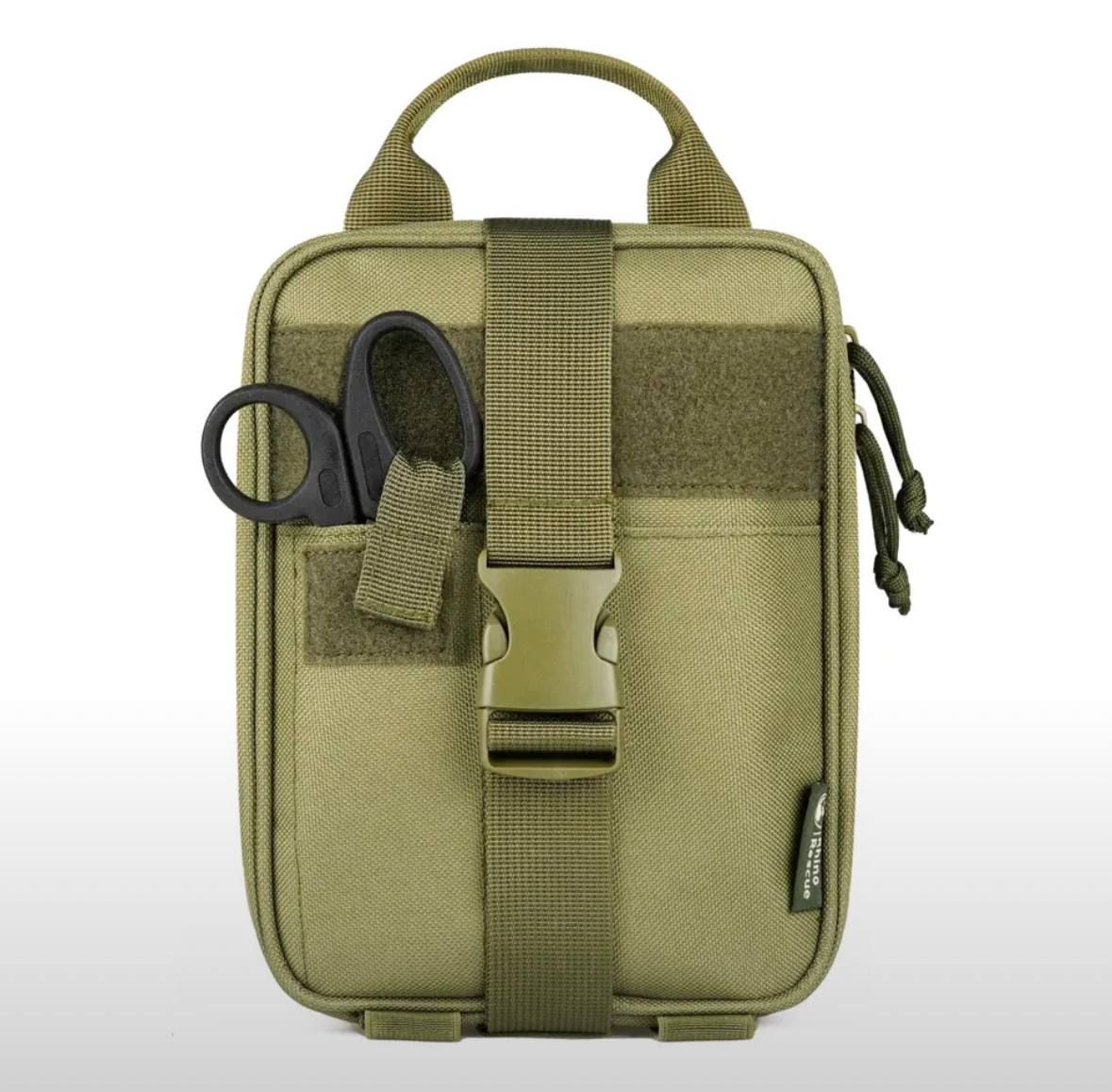 Можно повесить аптечку вертикально в полностью разложенном виде за пластиковый крючок-карабин.