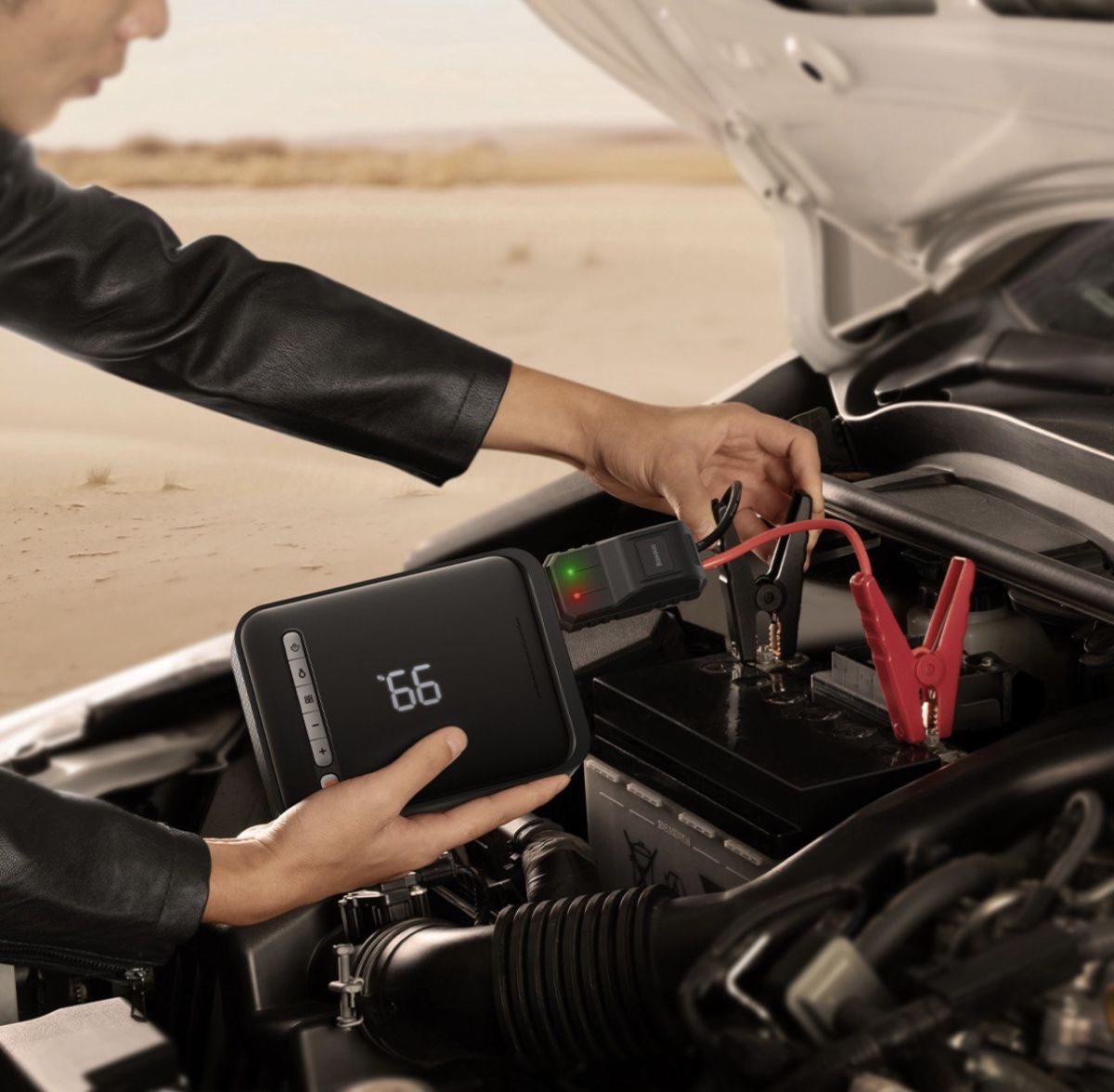 Он обеспечивает пиковый ток 1000 А и пусковой ток 500 А. При полной зарядке он может накачать все 4 колеса. Встроенный дисплей показывает уровень заряда батареи пускового устройства. Высокопроизводительные полимерные аккумуляторные элементы устойчивы к очень низким и высоким температурам. Низкое энергопотребление в режиме ожидания. Может сохранять до 85% накопленной энергии через год после последней полной зарядки, когда не используется. Встроенные средства защиты для предотвращения повреждения подключенных устройств. Благодаря встроенному светодиоду его можно использовать как фонарик. В комплект входят зажимы-крокодилы для подключения к аккумулятору и кабель USB - USB Type C.