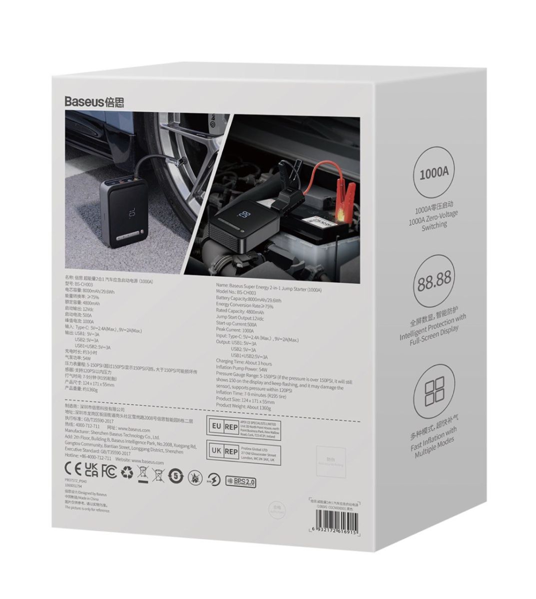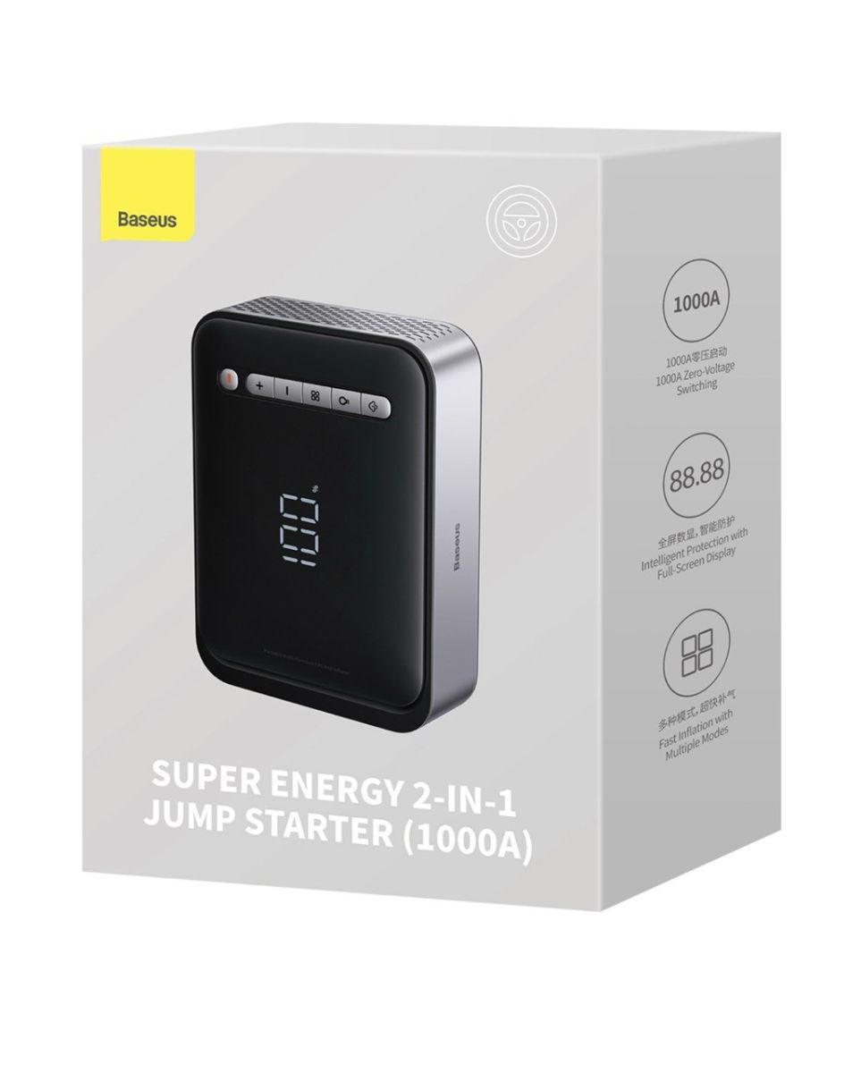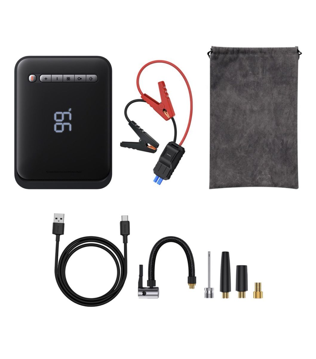 Baseus 2 в 1 Power Bank Jump Starter Booster 1000mAh 12V (1000A / 500A) / Шинный компрессор 150 PSI