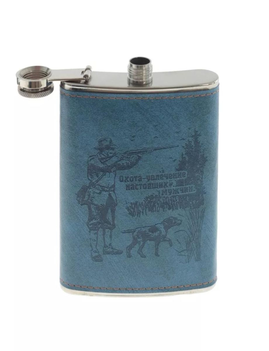 Если вы задумались о стильном и практичном подарке для мужчины, то фляжка это то, что Вам нужно! Фляжка на 250 мл., изготовленная из нержавеющей стали, покрытая приятным материалом голубого цвета с изображением охотника с собакой, а также с надпись "Охота - увлечение настоящих мужчин", который не даст фляге выпасть из рук. Фляжка надежно закручивается на резьбе, крышка фляги надежно прикреплена к основанию, в то же время откидывается. Отменное качество делает эту фляжку желанным подарком для любого мужчины. Её можно брать с собой в поход, на рыбалку или охоту. Все материалы, применяемые при изготовлении комплекта, проходят тщательный отбор, что гарантирует производство исключительно из высококачественного сырья.
