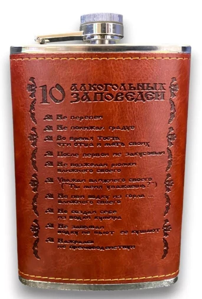 Фляжка изготовлена из нержавеющей стали, декорированы искусственной кожей.. Фляжка представляет собой емкость, в которую традиционно наливают крепкие алкогольные напитки — коньяк, ром, виски, водку. Однако ее можно использовать и для других жидкостей. Классическая карманная фляжка имеет плоскую, слегка изогнутую форму из-за традиции носить ее возле бедра, чтобы она как бы повторяла его форму. Подарочная фляжка для мужчины, коллеги, папе, дедушке. Фляжка из нержавеющей стали.