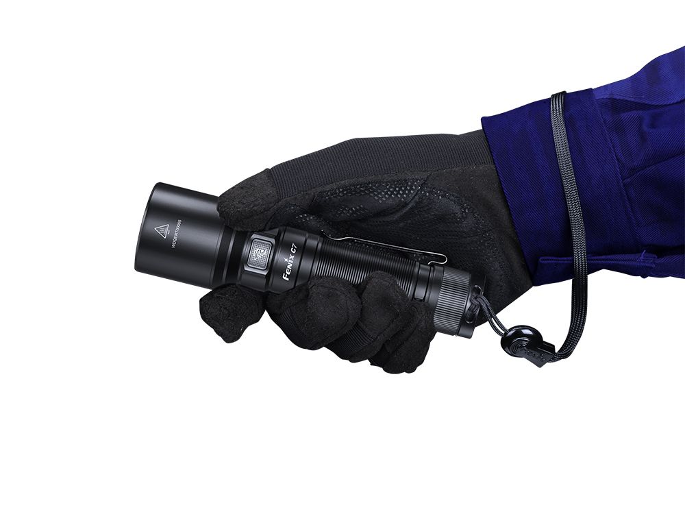 Фонарь Fenix C7 – высокопроизводительная ручная модель для промышленного обслуживания и применения. Зарядка осуществляется при помощи USB Type-C с включённой литий-ионной батареей ёмкостью 5000 мАч. Способен давать наибольшую яркость освещения в 3000 люменов в турбо-режиме при дистанции луча до 470 метров.