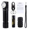 Комплектация: Фонарь, клипса, инструкция, уплотнительные кольца (2шт), 18650 Li-Ion аккумулятор 3500мАч, магнит, короткое сменное тело корпуса фонаря для использования с аккумулятором 18350, налобное крепление, кабель для зарядки USB-microUSB.