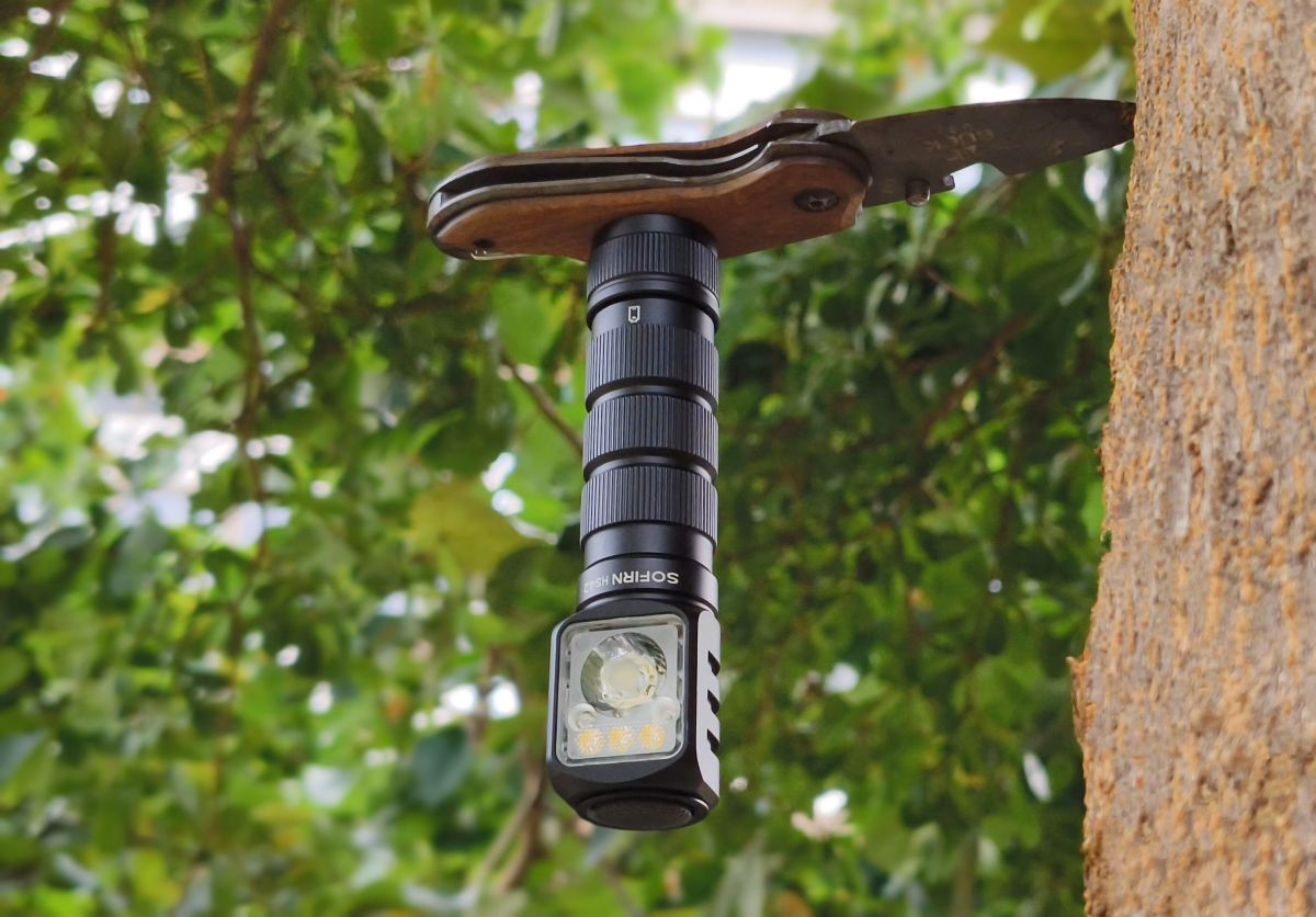 Оснащен 6 диодами с тремя источниками света: точечный, рассеивающий и красный свет, обеспечивающие отличную видимость в различных условиях. Удобное крпление защелка для фонаря.