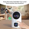 Вызов одним нажатием и обновление цветного ночного видения - Когда вашим детям и пожилым людям нужна помощь, они могут нажать кнопку вызова на внутренней камере, чтобы немедленно поговорить с вами. Эта внутренняя камера PTZ может охватывать поле зрения на 360°, с 12 инфракрасными лампами и 2 прожекторами, она поддерживает инфракрасный/полноцветный/автоматический (интеллектуальный) 3 режима ночного видения.