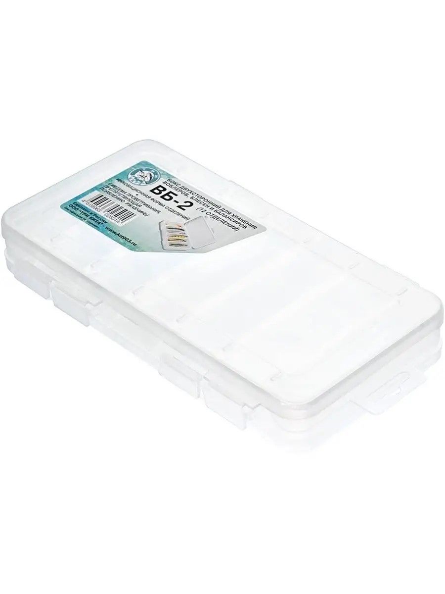 Коробочка выполнена из высококачественного пластика, двусторонняя. Всего в ней 12 отделений, по 6 отсеков с каждой стороны. Закрывается плотно, полностью исключая возможность самопроизвольного открывания. Коробочка рассчитана на воблеры от 60 до 90х размеров, каждый воблер лежит в отдельной ячейке, что обеспечивает долгосрочное использование и исключает спутывание воблеров между собой.