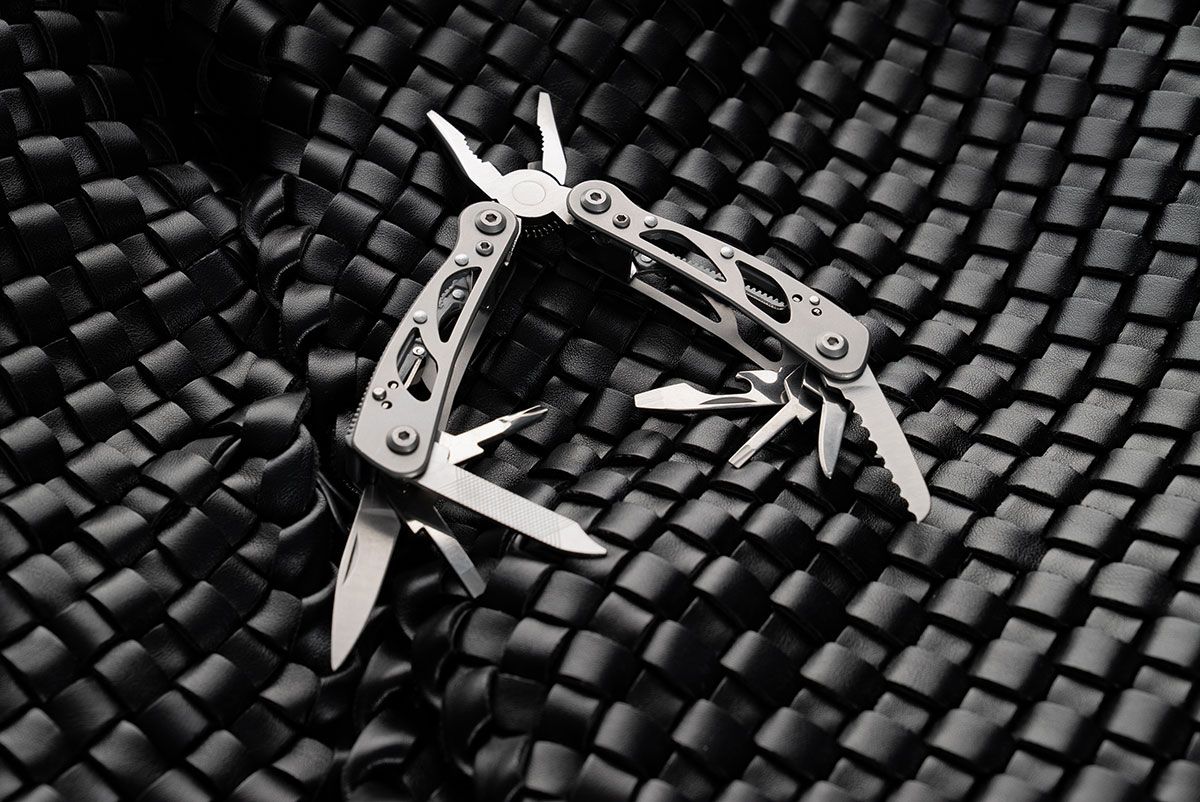 Модель G104 S отличается компактными размерами и небольшой массой. Оптимальный набор инструментов позволяет выполнить большинство работ, которые могут потребоваться в городских условиях. В комплект мультитула G104 S входят следующие инструменты: подпружиненные плоскогубцы с кусачками, два лезвия, одно из которых имеет серрейторную заточку, две плоских и одна крестообразная отвертки среднего размера, шило, небольшой напильник, паз для снятия изоляции с проводов, открывалка для бутылок и консервный нож. Все инструменты выполнены из нержавеющей стали 440С, которая имеет высокие эксплуатационные характеристики.