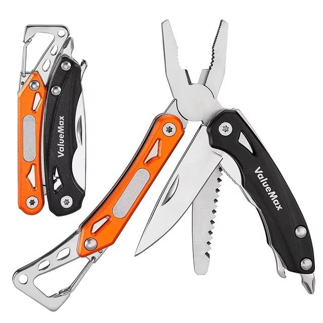 9 в 1 Миниатюрные многоцелевые плоскогубцы включают в себя 9 основных инструментов: острогубцы, плоскогубцы, кусачки, карабин, пилку для ногтей, пилу, открывалку для бутылок, крестовую отвертку и нож.