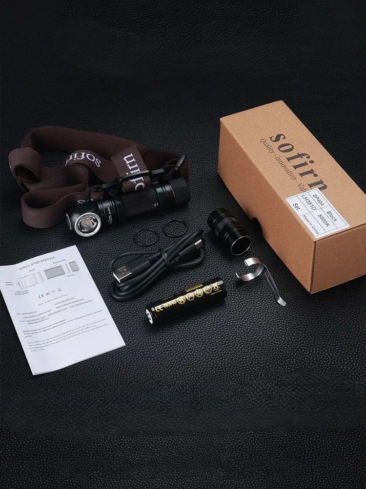 Налобный фонарь Sofirn SP40а с светодиодом LH351+TIR и цветовой температурой 2700К - обновленная версия первого мультифонаря в истории Sofirn. Подходит для тех, кому нужен фонарь с базовым набором режимов и максимально простым управлением. Благодаря светодиоду Samsung яркость света данной модели достигает 1200 люмен на расстоянии до 136 метров. Аккумулятор 18650 Li-Ion емкостью 3000 мАч заряжается в фонаре с использованием USB-кабеля. Для зарядки не требуется вынимать аккумулятор из фонаря. Универсальным Sofirn SP40a делает возможность нескольких вариантов фиксации: на металлических поверхностях благодаря магниту в задней крышке, на одежде, ремне или сумке с помощью клипсы, на голове в паре с комфортным налобным креплением. Фонарь Софирн можно также использовать в качестве велофары или основного источника света. Индустриального. износостойкий корпус из авиационного алюминия, который незаменим для охоты и рыбалки. Фонарь имеет 4 режима яркости. Время работы до 4 часов в среднем режиме и до 2 на турбо режиме. Автоматический термоконтроль режим Turbo автоматически переходит в режим High для предотвращения перегрева. Изменяемый угол наклона фонаря - до 180 градусов. Фонарь водонепроницаем по стандарту IPX7 с защитой от погружения в воду до 2 метров. Наименование: Налобный светодиодный тактический аккумуляторный мощный фонарь Sofirn SP40A-LH351D-2700k