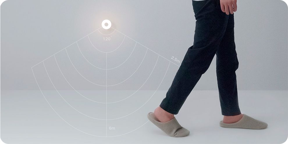 В девайс встроены датчики присутствия и света, работающие в диапазоне 120 градусов. Благодаря датчикам ночник даже в кромешной темноте обнаружит движение и включится. При отсутствии движения на протяжении 15 секунд устройство автоматически отключается, чтобы сэкономить энергию.