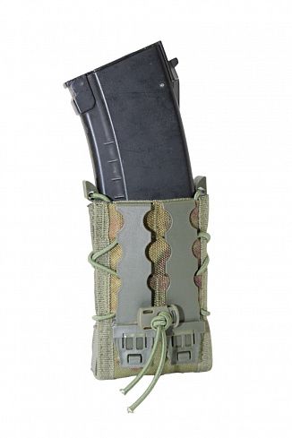 Благодаря уникальной конструкции, подсумок надежно фиксирует магазины, они не выпадают ни при каких обстоятельствах, даже при прыжках с парашютом и в перевернутом состоянии.