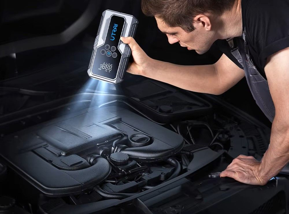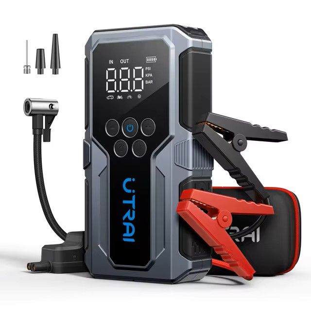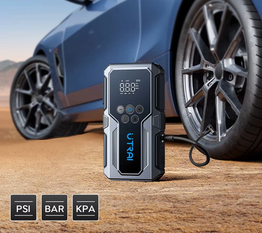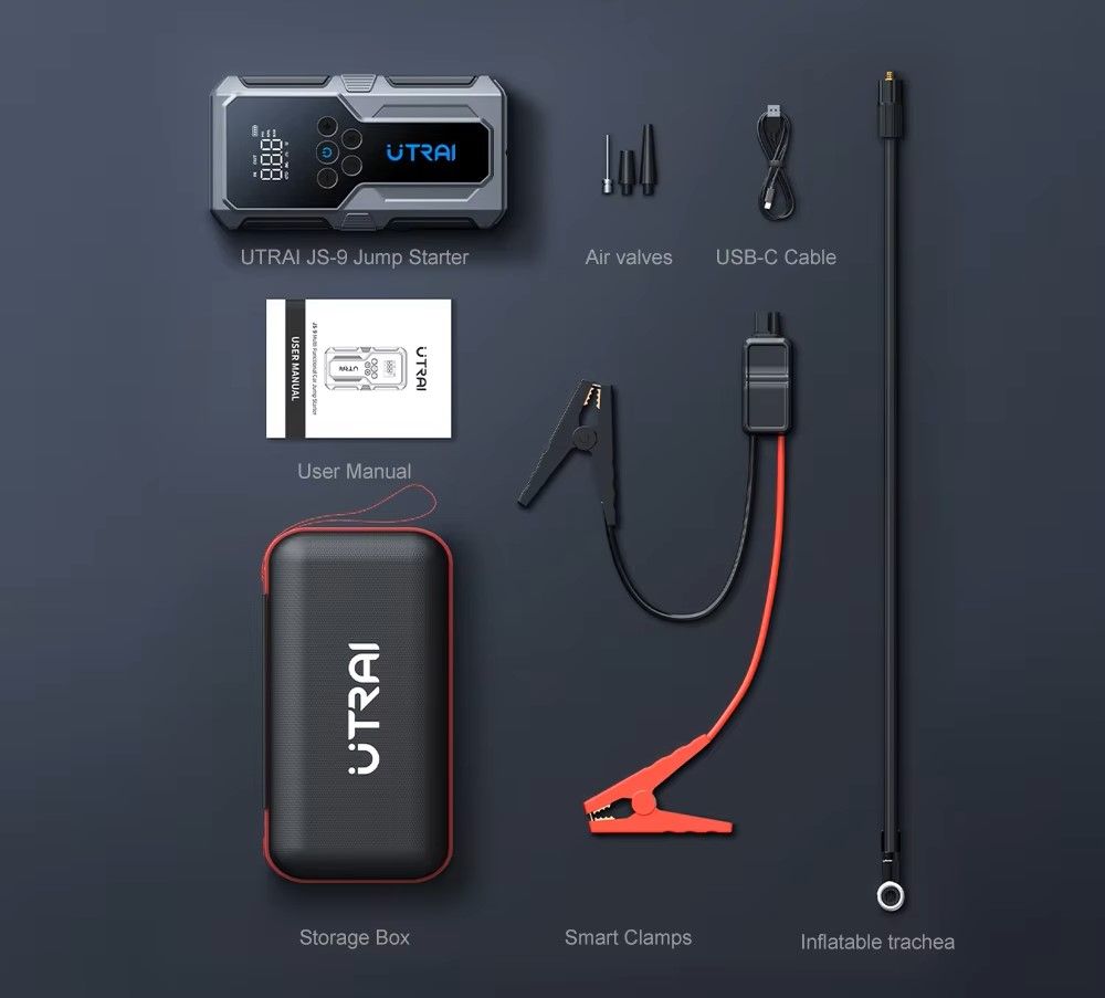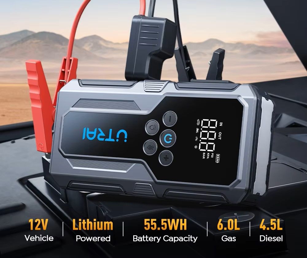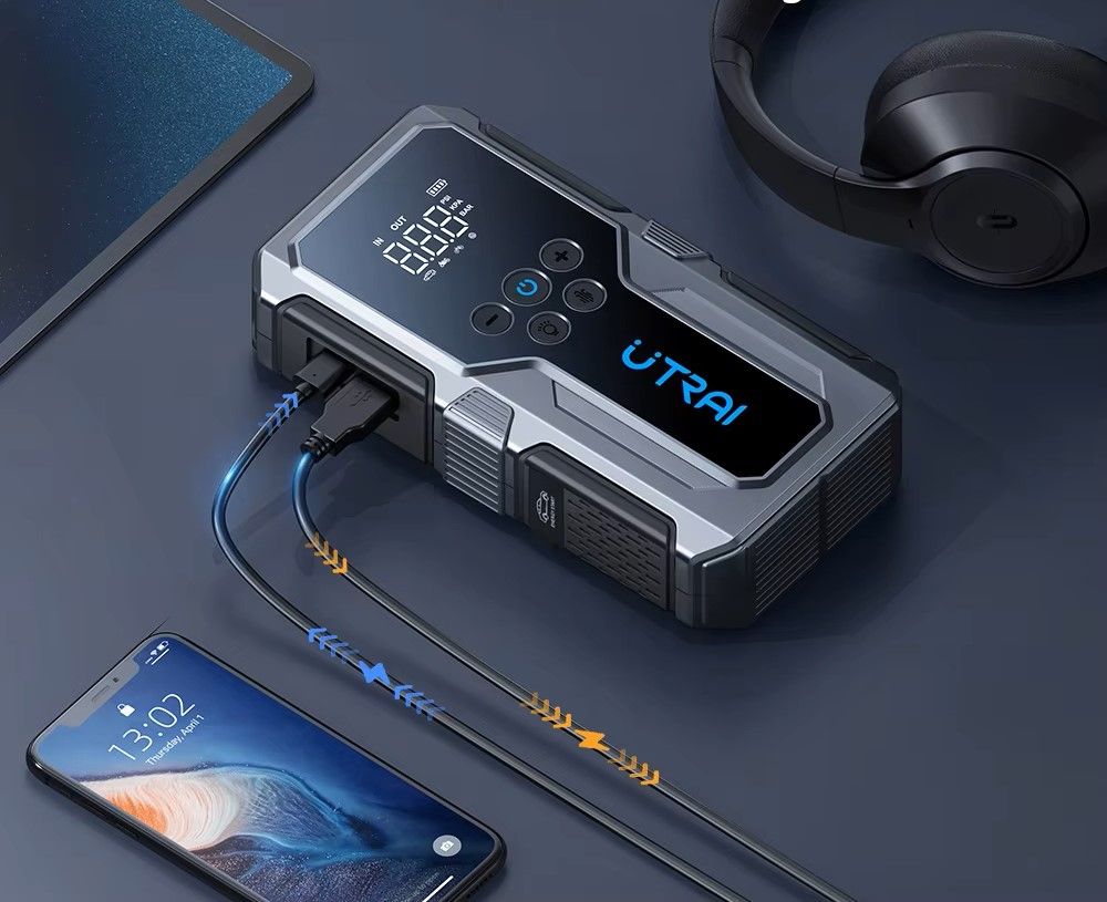 Utrai - это компактное пуско-зарядное устройство с функцией Power Bank, LED фонарём, а так же встроенным компрессором для накачки автомобильных, мотоциклетных и других видов шин. Максимальный пусковой ток устройства - 1500А, емкость 10000мАч. А это значит, что автопусковое устройство легко и быстро заведёт ваш автомобиль с бензиновым двигателем объёмом до 6,0л., или дизельный двигатель объёмом до 4,5л. Даже с полностью севшим аккумулятором или без него, всего за несколько секунд!