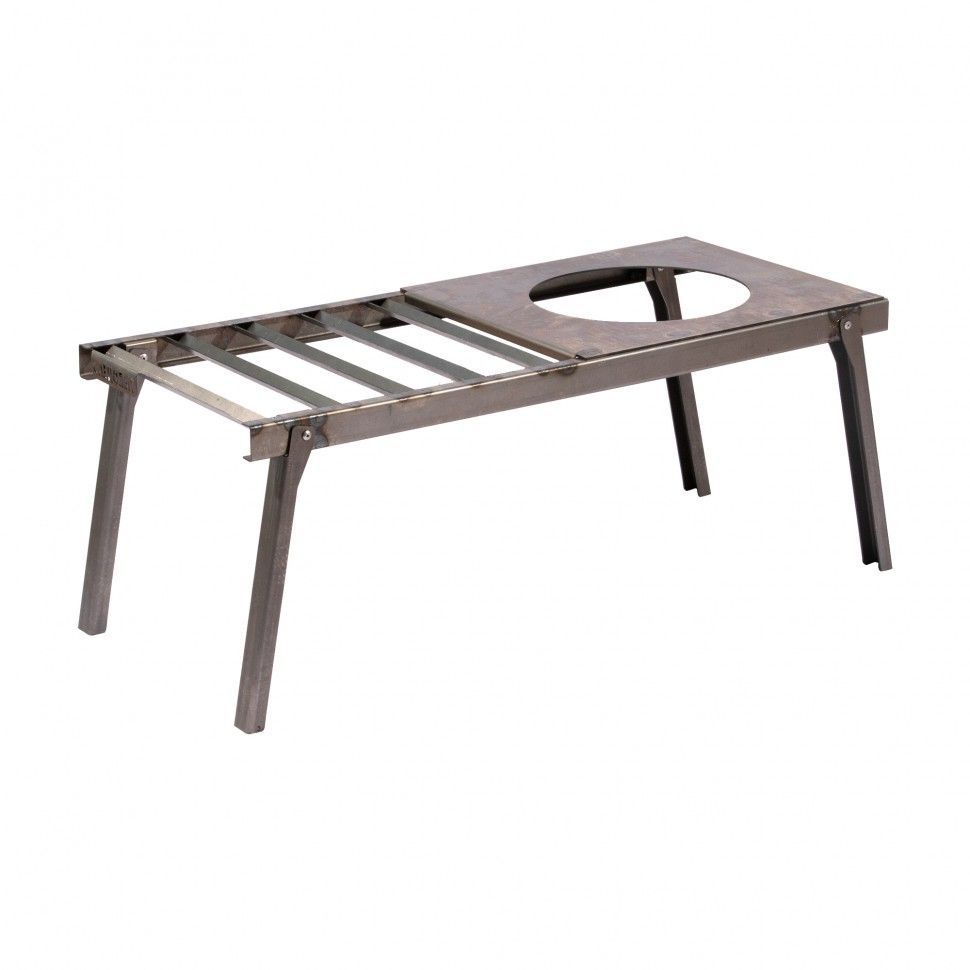 Решетка костровая «Следопыт» с подставкой под казан усиленная - переносная подставка со складными ножками для приготовления пищи на открытом огне при выездах на природу. Можно использовать как для установки посуды, так и для жарки мяса и прочих продуктов. Поверхность решетки способна выдержать до 70 кг. Можно установить одно или два полных ведра воды, чайник или котелок любого объема. Решетка оснащена круглым отверстием под казан. Комплектуется сумкой для переноски и хранения. Срок службы неограничен. ХАРАКТЕРИСТИКИ: • • Вес – 2,9 кг. • Размер – 660*300*260 мм. • Каркас – сталь 2 мм. • Максимальная нагрузка – 70 кг. • Диаметр отверстия – 200 мм. • Размер в сложенном виде – 660*300*32 мм.