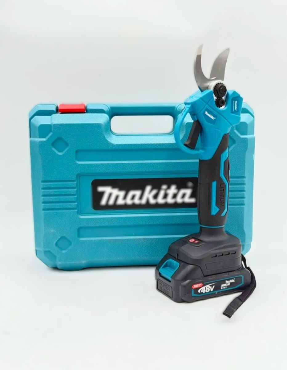 Беспроводной электрический секатор для сада Makita 2 аккумулятора позволит проводить работы по обрезке деревьев и кустарников. Материал электроножниц для деревьев на аккумуляторе — пластик и сталь. Увеличить комфорт при обрезке деревьев также помогает антискользящая ручка. Мощный сучкорез садовый считается универсальным инструментом. Данная садовая техника с механизмом предназначена для обрезки веток деревьев, кустарников и других растений диаметром от 0 мм до 30 мм. Срез получается ровный и достаточно гладкий. Автоматический кусторез можно использовать для формирования кустиков в определенной геометрической форме или в виде другой фигуры. Электро секатор работает от аккумуляторной батареи емкостью 2000 мАч. Одного заряда хватает приблизительно на 5 часов работы. Аккумуляторный секатор можно использовать при температуре окружающего воздуха от -10°С до +65°С. В сравнении с обычными инструментами, электрические секаторы увеличивают производительность садовода примерно на 30%. Профессиональные ножницы для кустов и дополнительное оборудование поставляются в специальном пластиковом кейсе, увеличивающим удобство хранения электроприбора. Перед первым использованием электро ножовка для орхидей и других растений или даже для рыбы, полностью заряжается. После выполнения работы электросекатор 21v надо очистить от загрязнений. Мыть ручной садовый электроинструмент нельзя. Уборка должна производиться влажной тряпкой без применения очистительных средств. Беспроводной секатор для дачи лучше хранить в сухом месте. Стальной электроинструмент для цветов и кустарников требует с аккумулятором периодического обслуживания, которое заключается в выравнивании зазубрин, полученных после реза сучков, заточке режущих полотен и смазке основных рабочих элементов.