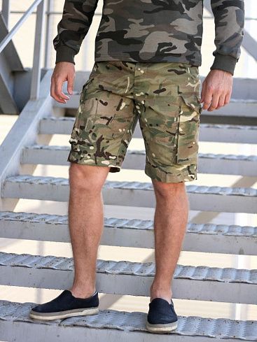 Шорты MTP CAMO английского армейского образца. Имеют пять карманов: 2 боковых прорезных, 2 больших боковых накладных с клапанами на пуговицах, 1 задний на пуговице. Ширинка: молния + пуговица. В поясе скрытая утяжка.