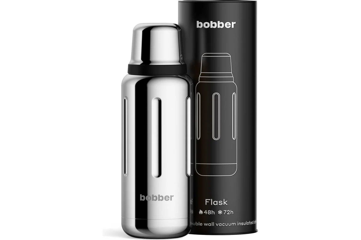 Bobber Flask — классический термоc 1 литр с узким горлом, пробкой с каналами для налива и крышкой-чашкой.