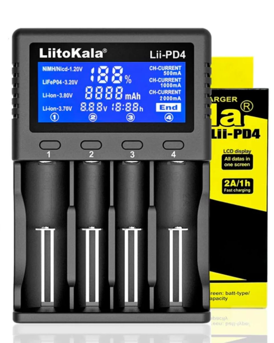 Зарядное устройство Liitokala Lii-PD4 – это универсальное и эффективное устройство для зарядки различных типов аккумуляторов, таких как литий-ионные (Li-ion), никель-металлгидридные (NiMH) и никель-кадмиевые (NiCd).